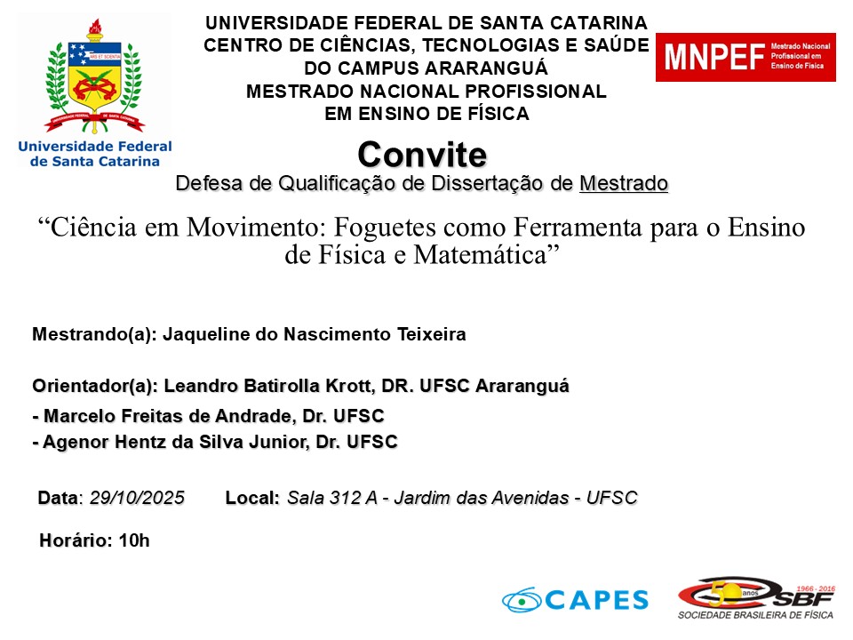 - Conforme o Edital Nacional, a documentação referente à segunda etapa deverá ser encaminhada ao polo impreterivelmente até o dia 08 de novembro de 2025 pelo e-mail mnpef@contato.ufsc.br