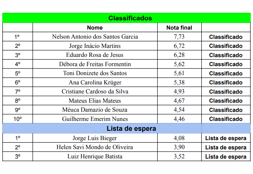 Obs. 1: Os documentos comprobatórios de docência para pontuação em “Experiência Profissional” só foram validados quando indicavam explicitamente a área de Física ou Ciências (ensino fundamental), conforme prevê o Anexo III do Edital Complementar.